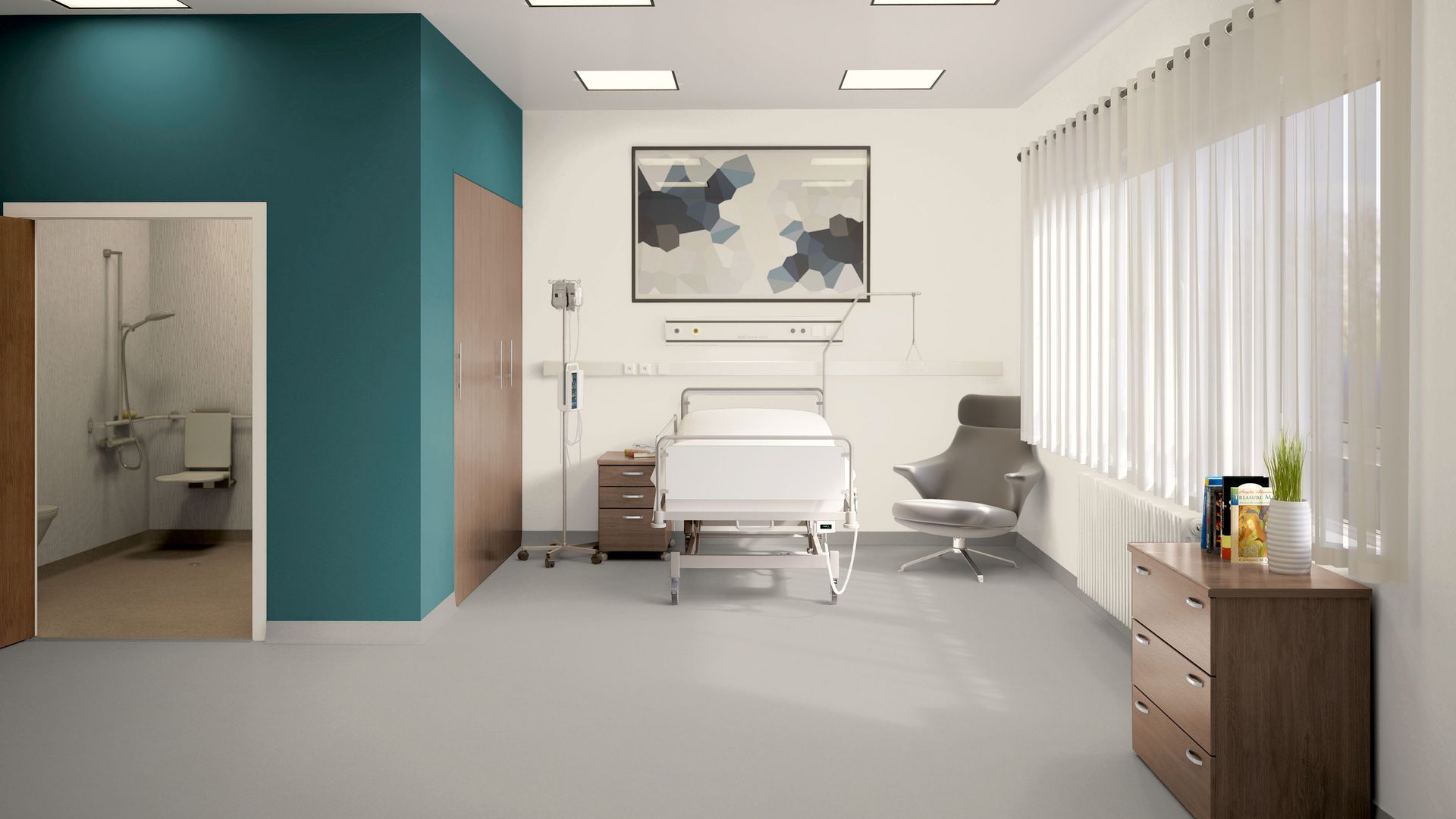 Natürlich soll der Untergrund zum übrigen Raum passen – sei hinsichtlich der Farbe oder dem Material. Denn auch ein Boden trägt wesentlich zum Raumgefühl – und in diesem Fall zur Gesundung eines Menschen bei.